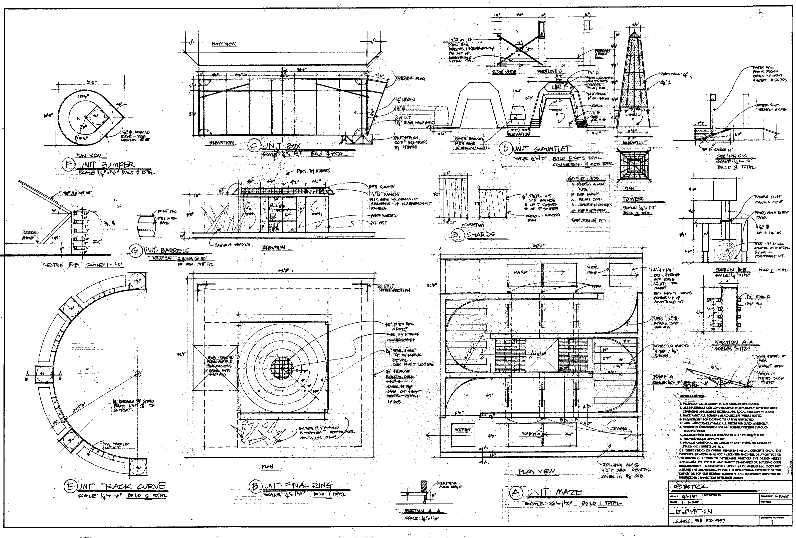 These are in .jpg format. I have higher-res copies I can send (about 2.3Mb each) If you would like these, let me know. If you need them in a different format, let me know. **Although these plans are "final", they are still subject to change.** Some of the details aren't completely legible, so let me break some of it down for you: MAZE