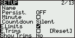 Page down thru the Model Setup menu to the MIXER screen. Your mixer screen should look like this: